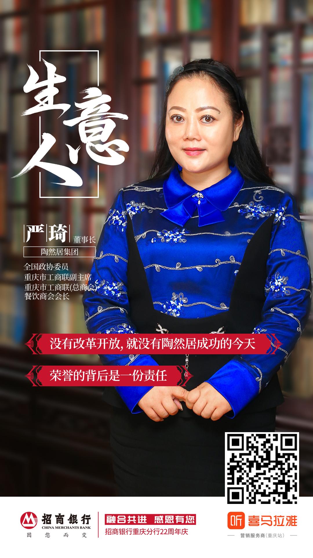 问:好的好的,再次感谢严总,感谢您分享这么精彩的一个人生经历。希望我们陶然居集团能够继续保持初心,用匠人之心打造每一道重庆菜。同时也希望我们招商银行能够陪伴您。一起共同的成长,谢谢!